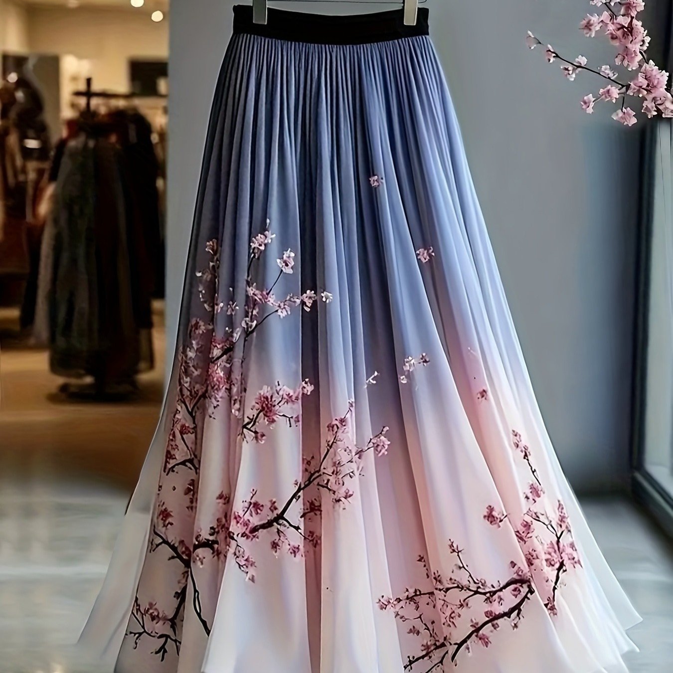TEMU 보라색 그라데이션 프린트 기질 패션 여성 스커트 신상 스타일리시 레트로 프렌치 고급 긴 A라인 스커트 여성