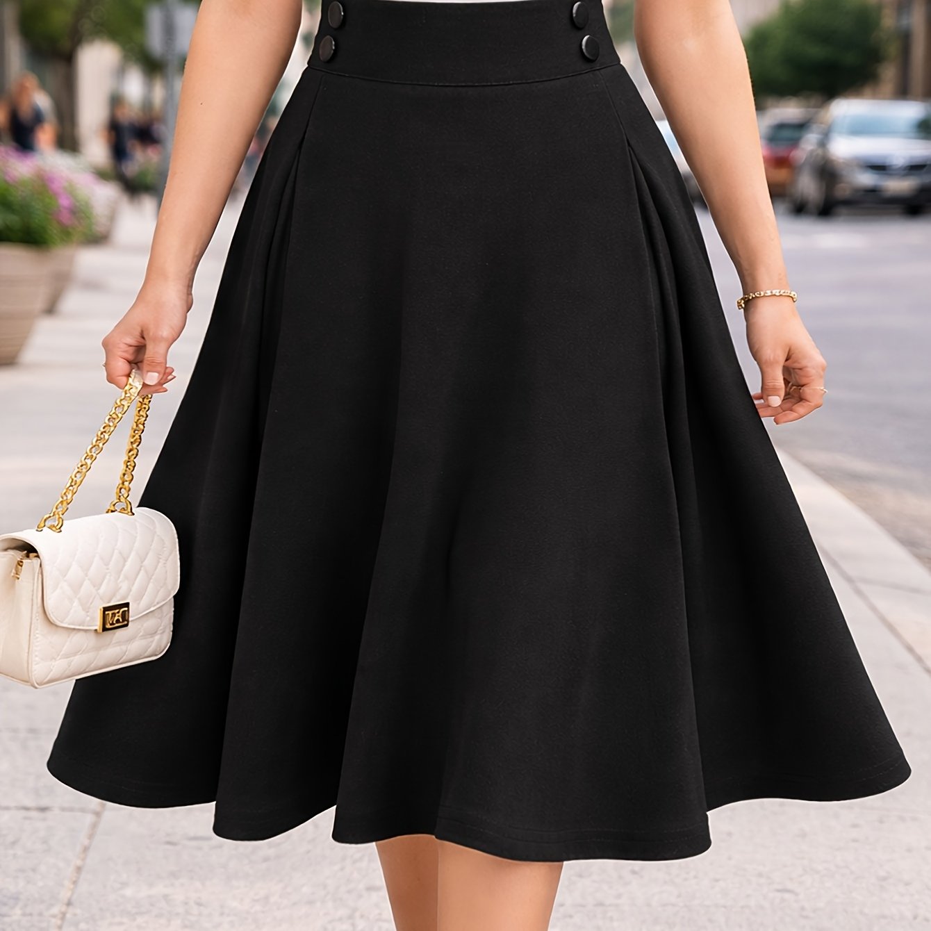 TEMU 여성용 클래식 블랙 하이웨이스트 A라인 스커트, 캐주얼과 업무 장소 모두에 어울리는 다용도