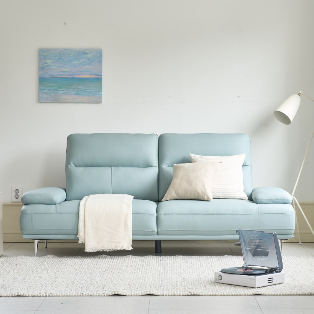 클로드 천연면피가죽 3인 소파 블루그레이