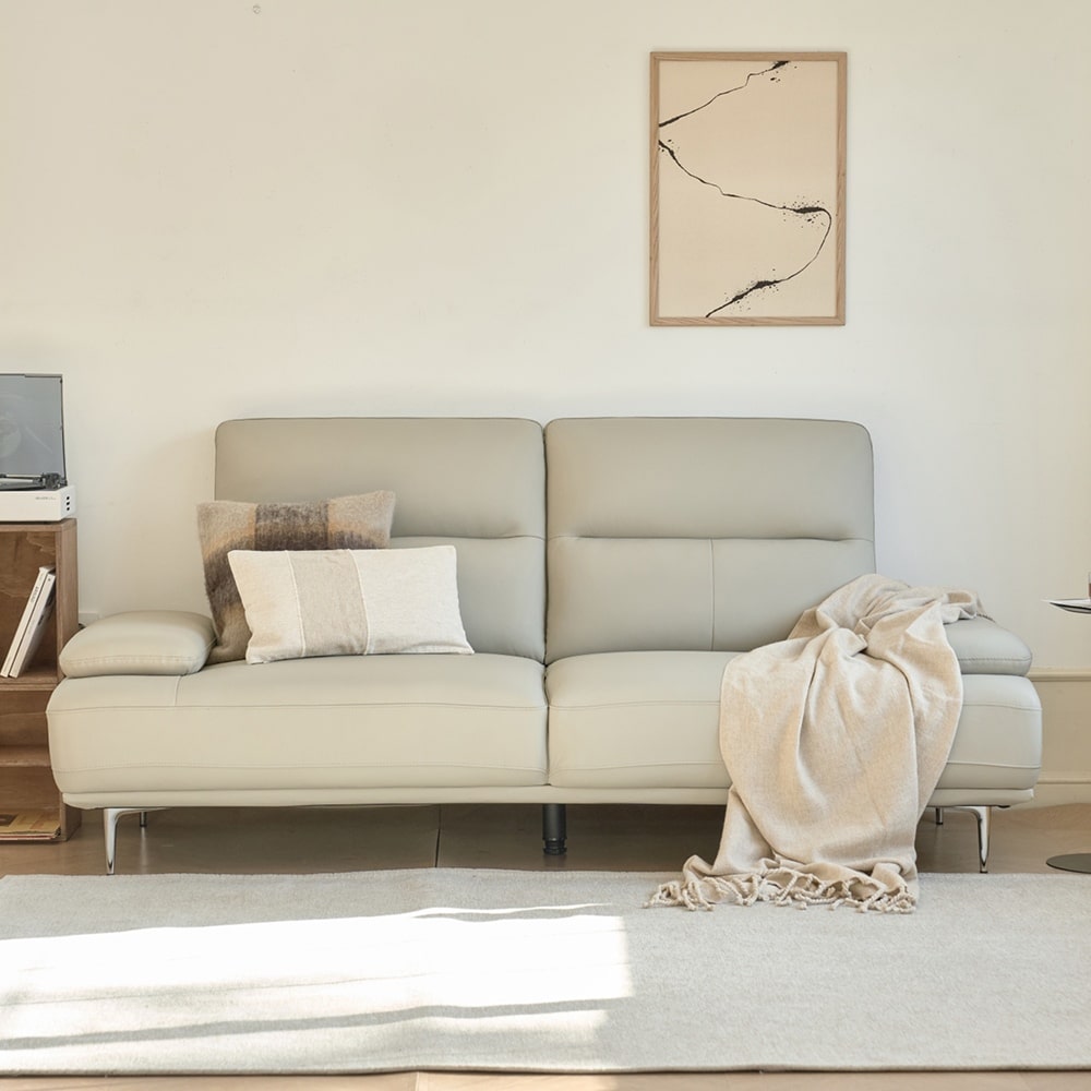 클로드 천연면피가죽 3인 소파 그레이