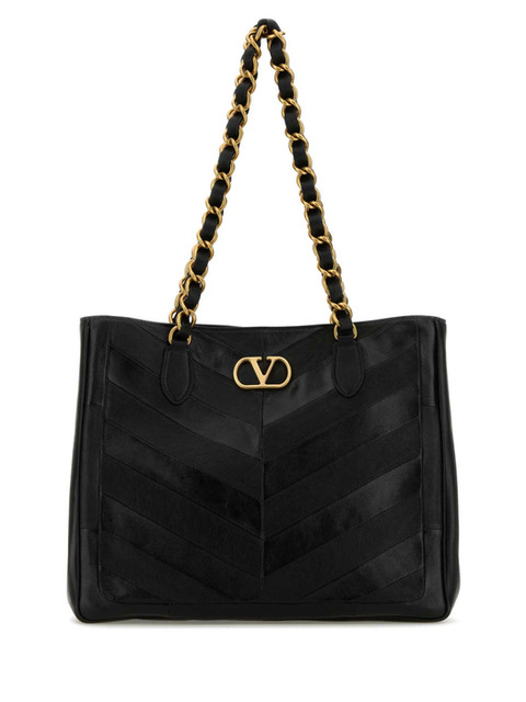발렌티노 가라바니 Black leather Laseine shopping bag 8W2B0T12PSN 0NO BLACK 1JP1