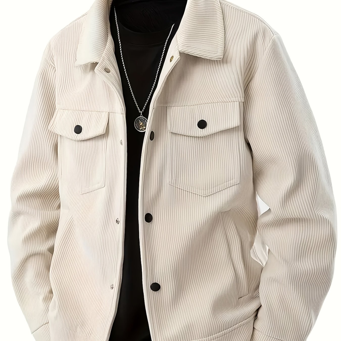 TEMU 랜슨 OBM 남성 코듀로이 재킷 - 캐주얼 라펠 칼라 버튼 코트, 루즈핏 코듀로이 라펠 & 포켓 재킷, 봄/가을용, 세탁기 사용 가능 아우터웨어 (아니요) - 베이지/탄, 다용도