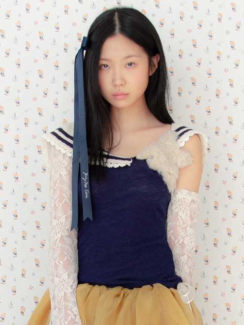 [카이샤오] Sea Moon Fairy Lace Long Sleeve Star Navy Collar Top