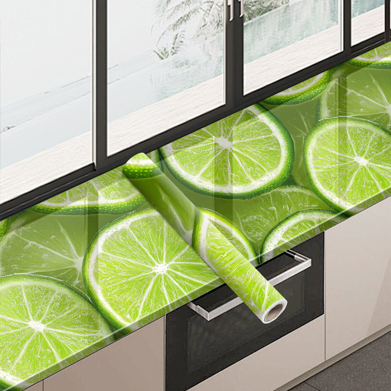 TEMU 1pc 생생한 라임 슬라이스 패턴 자체 접착식 PVC 벽지 - 분리 가능하고 쉽게 벗겨서 붙일 수 있는 설치, 주방, 거실, 침실, 계단, 욕실 벽 및 가구 장식에 완벽, 39.37x15.75 인치, 욕실 장식 | 생생한 벽지 디자인 | 자체 접착식 벽지