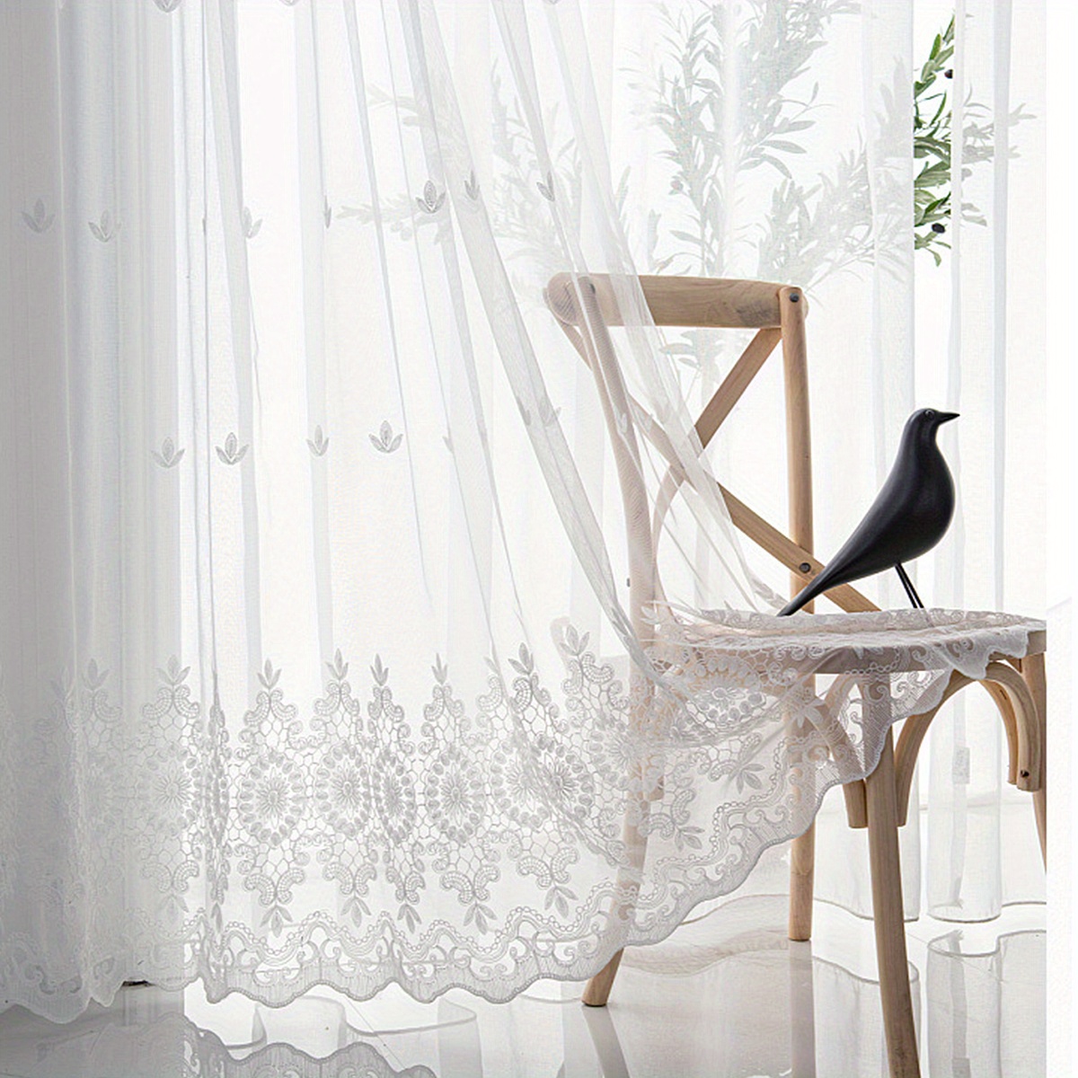 TEMU 1개 현대 자수 시스루 커튼 패널, 거실 침실용 100% 폴리에스터 로드 포켓 창문 드레이프, 기하학 패턴, 손세탁 전용, 장식용 안감 없는 메쉬 원단, 사계절용 목가적 스타일