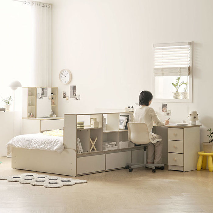 소소숲 소소숲 체르민 올인원 파티션 슬라이딩 수납침대 SS 1200 책상세트 (B형)