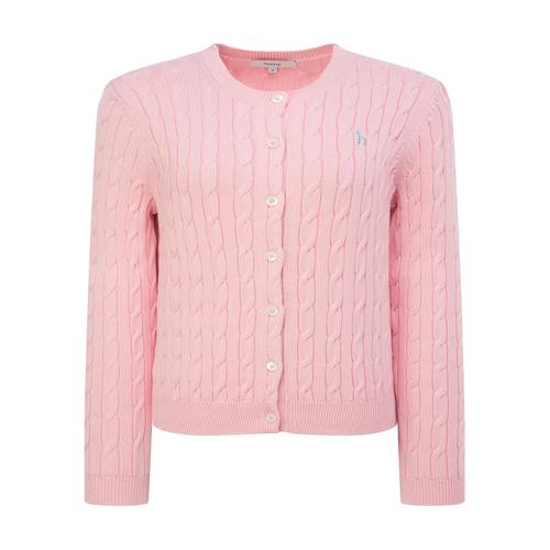 헤지스 여성 26SS 아이코닉 케이블 긴팔 크루넥 가디건 핑크 HSSW6AC11P2