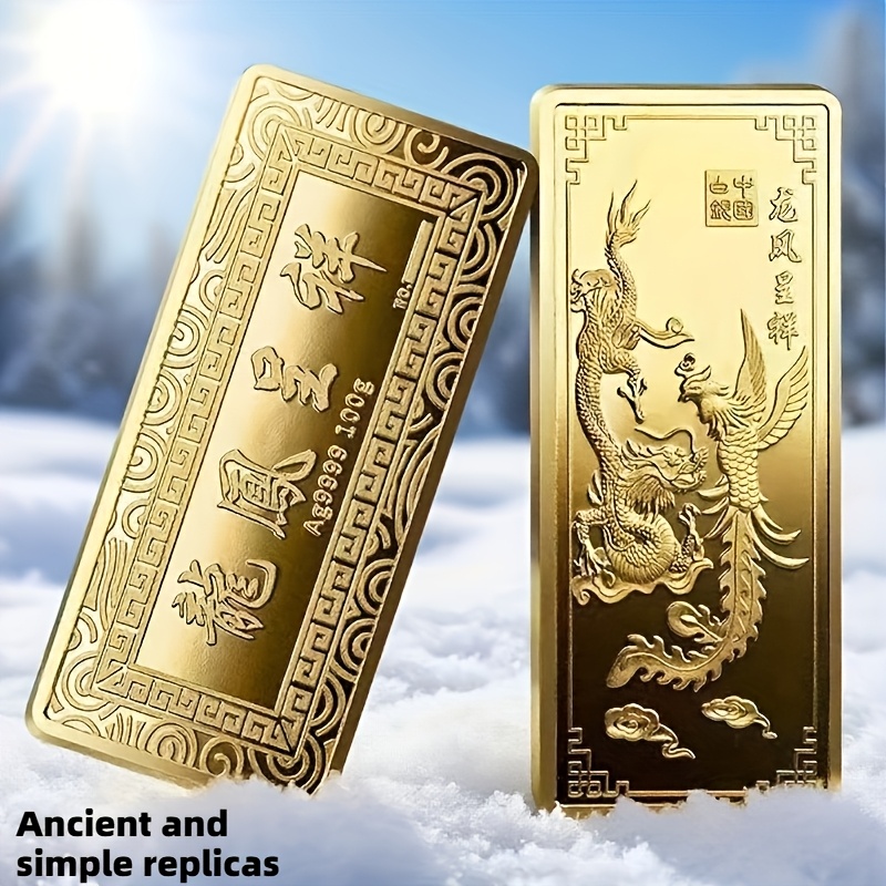 TEMU 전통 중국 용과 봉황이 부를 가져다주는 고품질 정교한 금박 모조 금괴, 선물용으로 최적의 선택. 홈 & 오피스용 완벽한 데스크탑 장식품, 핸드캐스트 아연 합금 제작