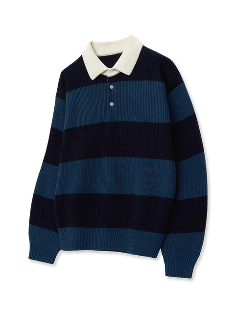 [티엔지티] 네이비 오버핏 울캐시 럭비 폴로 니트 (TNSW4F204N2)