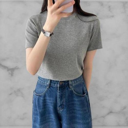 [다잇템]여성 민무늬 U넥 반소매 비스코스 클래식 니트