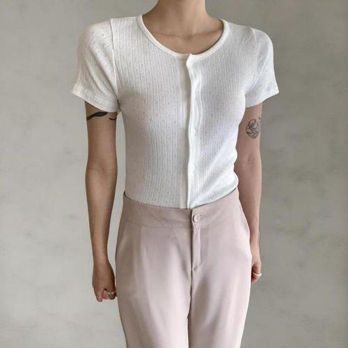 [다잇템]여성 골지 반소매 탱크 세로 단추 U넥 가디건
