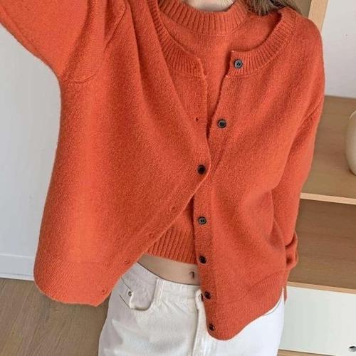 [다잇템][다잇템] 여성 비스코스 스웨터 U넥 반소매 카디건 세트_23495984_588872