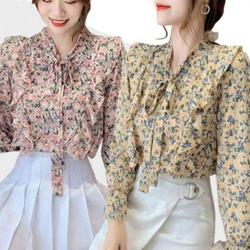 [에이치플러스몰]블라우스 인기 브이넥 프릴 돌잔치 감성 긴팔 휴가 셔