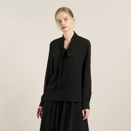 [에이치플러스몰]브이넥 스트링 타이 블라우스 페미닌 면접 직장인