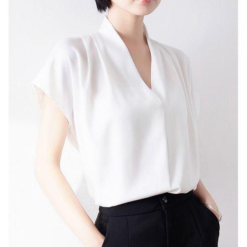 [에이치플러스몰]여름 브이넥 데일리 여자 브라우스 클래식 여성 반팔