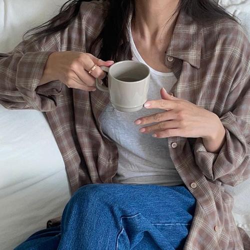 [주식회사 브이와이][JHQRXI53_4A]아몬드 빈티지 가을 체크셔츠 (22399765A)