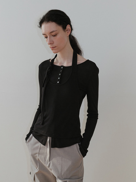 [로우타이드] HALTER NECK BUTTON TWO PIECE [GREY]