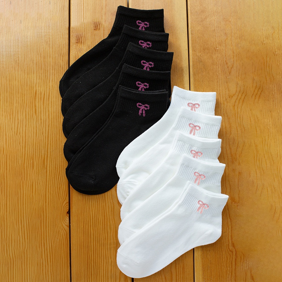 TEMU 10 쌍 여성 귀여운 보우넥 발목 양말 - 검은색 & 흰색, 투명, 다용도 일상 착용, 휴일, 야외 활동, 손세탁 또는 건조 세탁, 귀여운 양말, 짧은 스타일, 우아한 스타일, 단색, 폴리에스터 안감, 폴리에스터