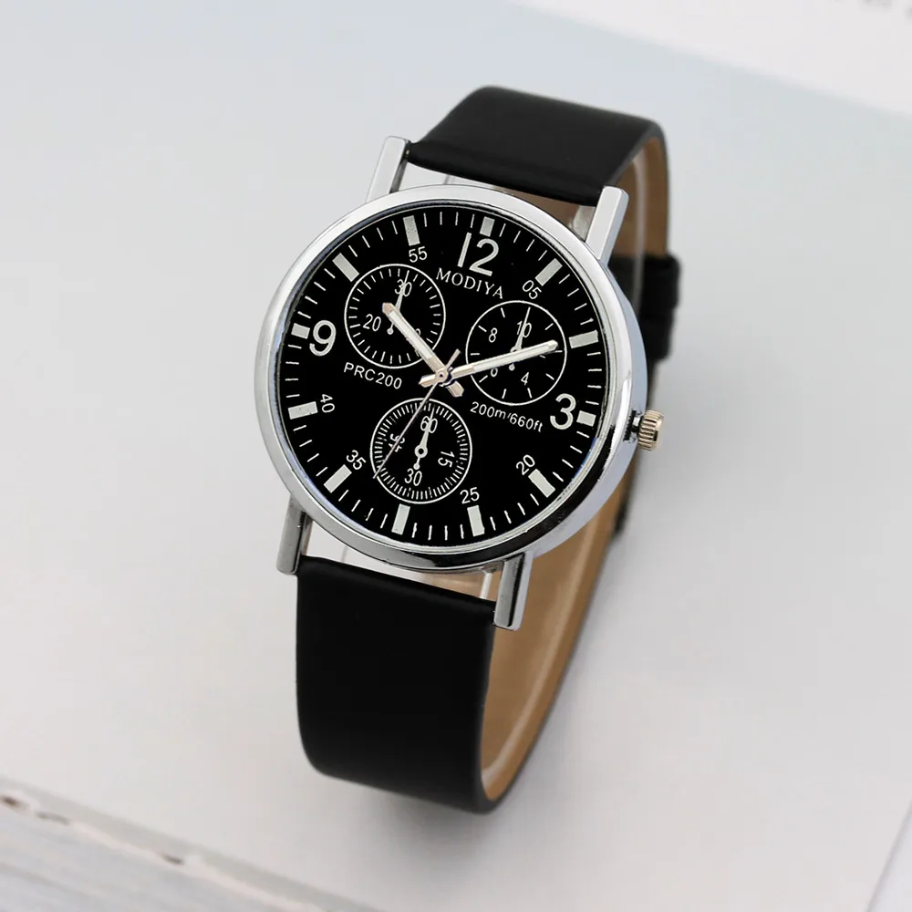 제네바 가죽 비즈니스 패션 바늘 아날로그 손목 초 시계
